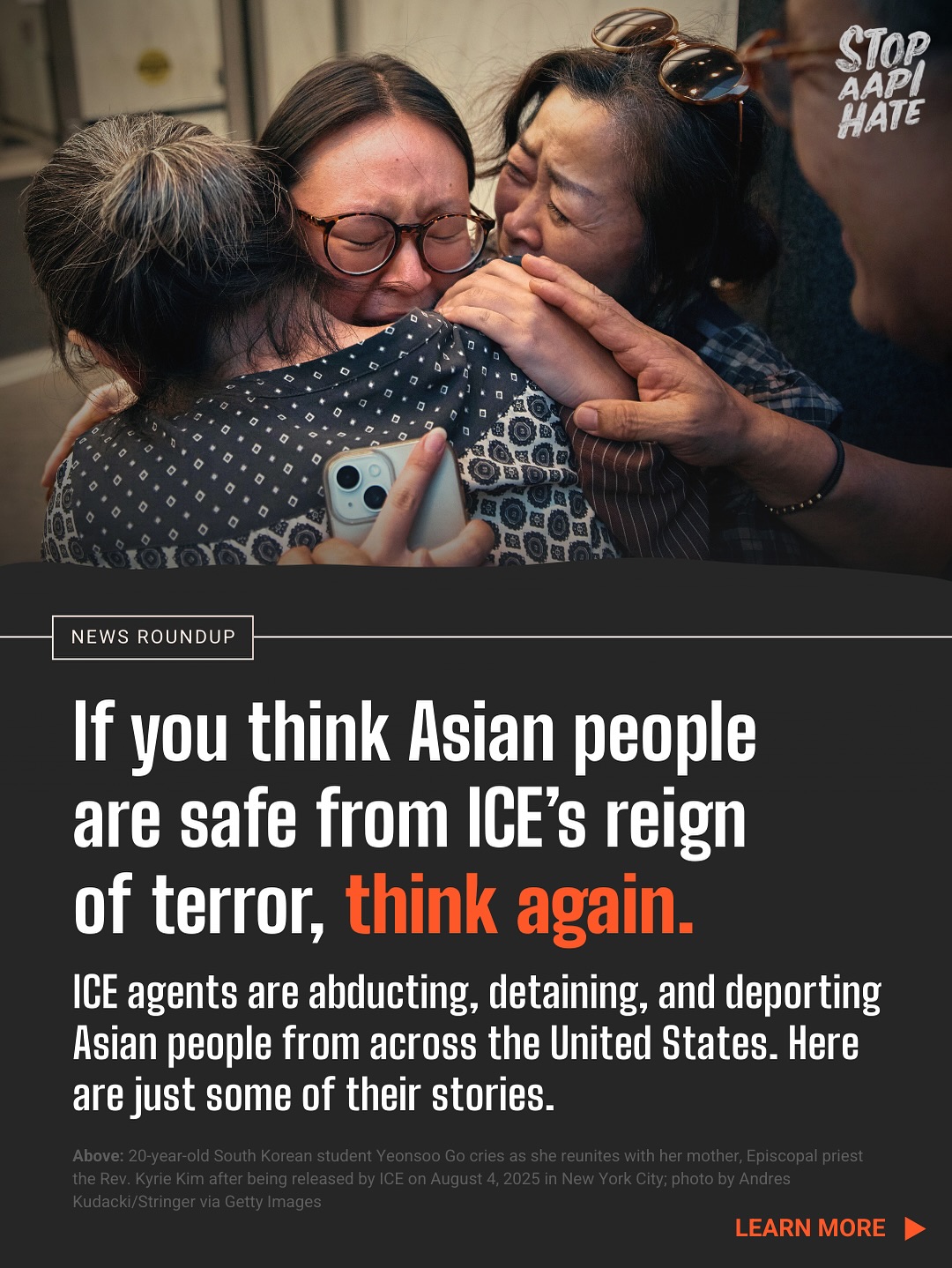 Stop AAPI Hate is a national coalition dedicated to fighting racism and discrimination against Asian and Pacific Islander people in the U.S. We strive to advance the multiracial movement for equity and justice by raising awareness about anti-AAPI hate, working in solidarity with allied communities, and advocating for comprehensive solutions that tackle the root causes of race-based hate.