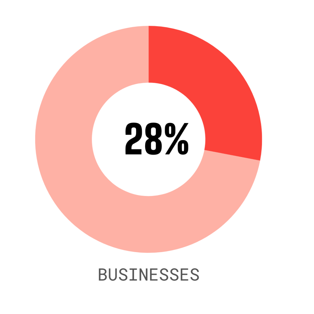 businesses (28%) — including restaurants, supermarkets, or gas stations.