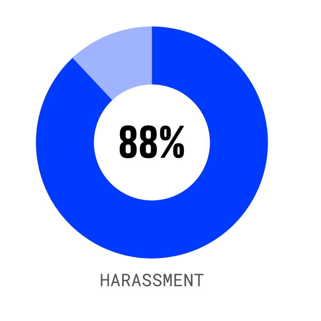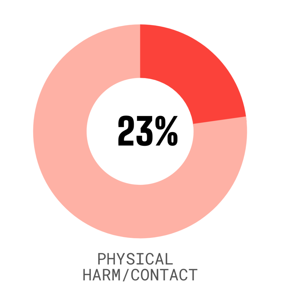 Most hate acts involve some form of harassment (88%) — while 23% of hate acts involve physical contact or harm.